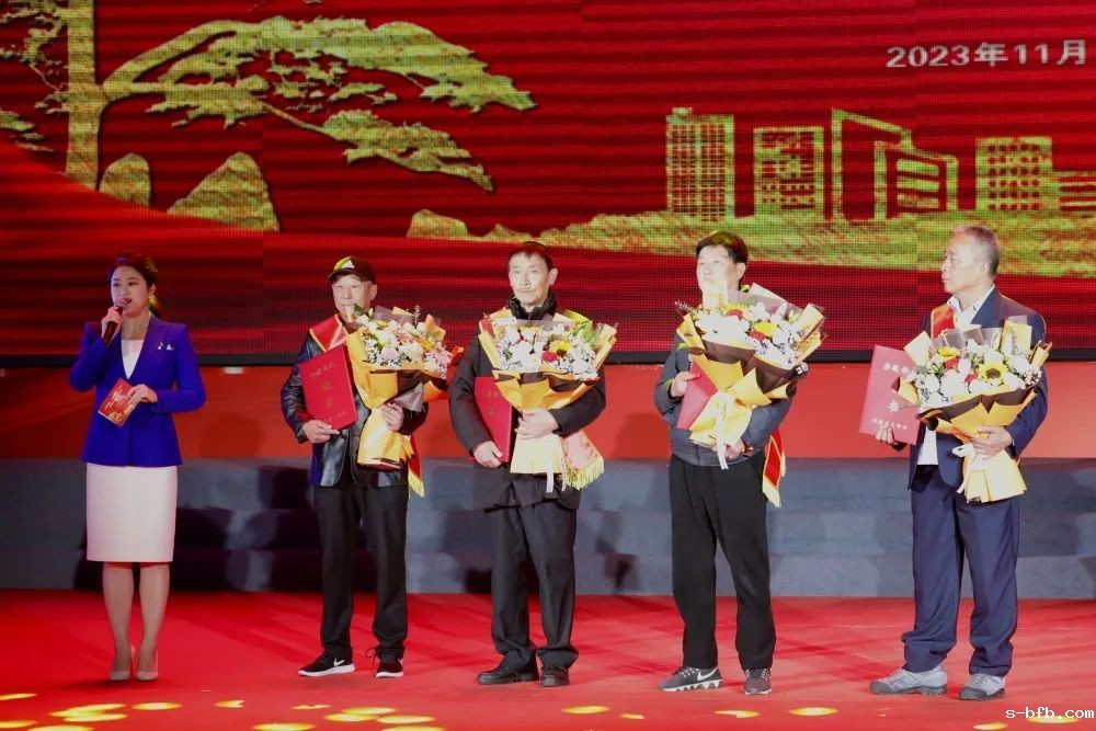“见义勇为”代表刘进武、苏传来、韩天庆、黄庆祝上台。