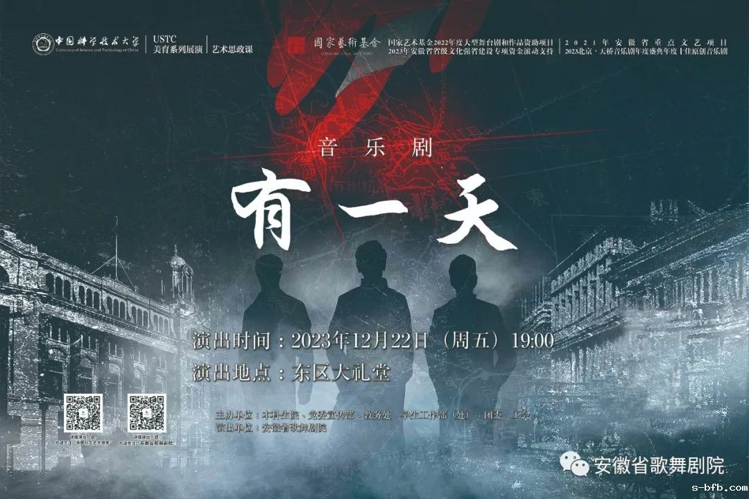 12月22日,“新时代 新徽班 新气象”精品剧目展演活动的重要剧目——安徽省原创音乐剧《有一天》在中国科学技术大学东区大礼堂精彩上演。