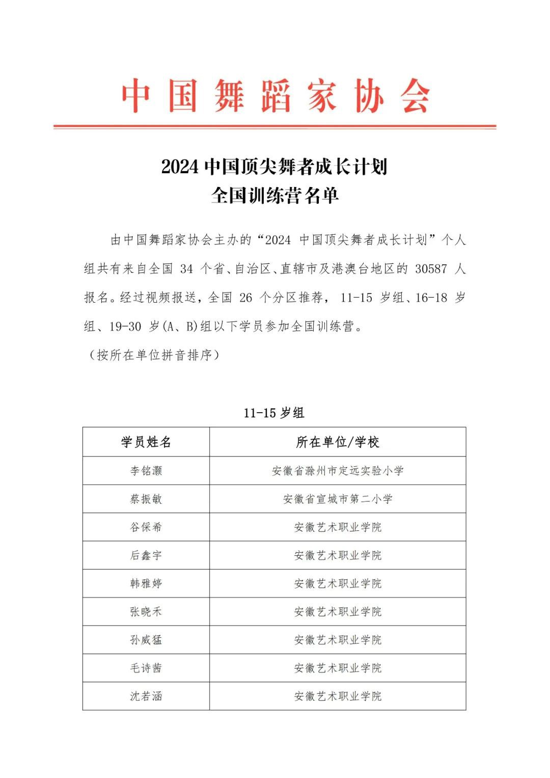 2024顶尖舞者全国训练营、全国作品展演(群舞)名单公布