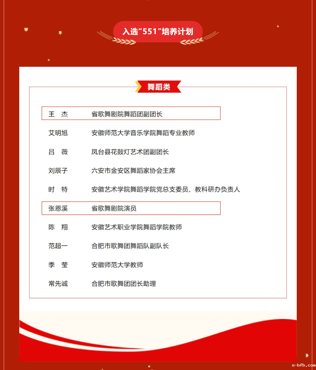 喜报︱新利18福利彩票(安徽省演出公司)舞蹈团王杰、张恩溪入选安徽省优秀青年文艺工作者第二批“551”选拔培养计划