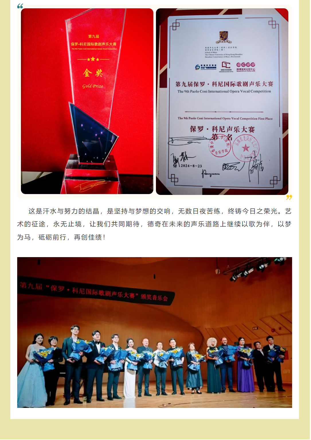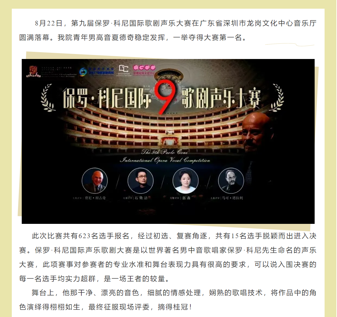 又得奖啦?没错,金奖——我院青年男高音夏德奇荣获第九届保罗·科尼国际歌剧声乐大赛第一名