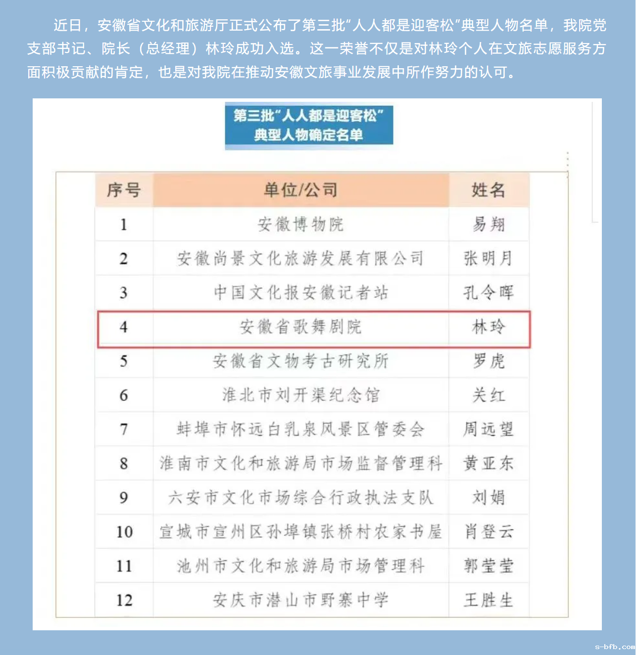 我院党支部书记、院长林玲荣膺第三批“人人都是迎客松”典型人物