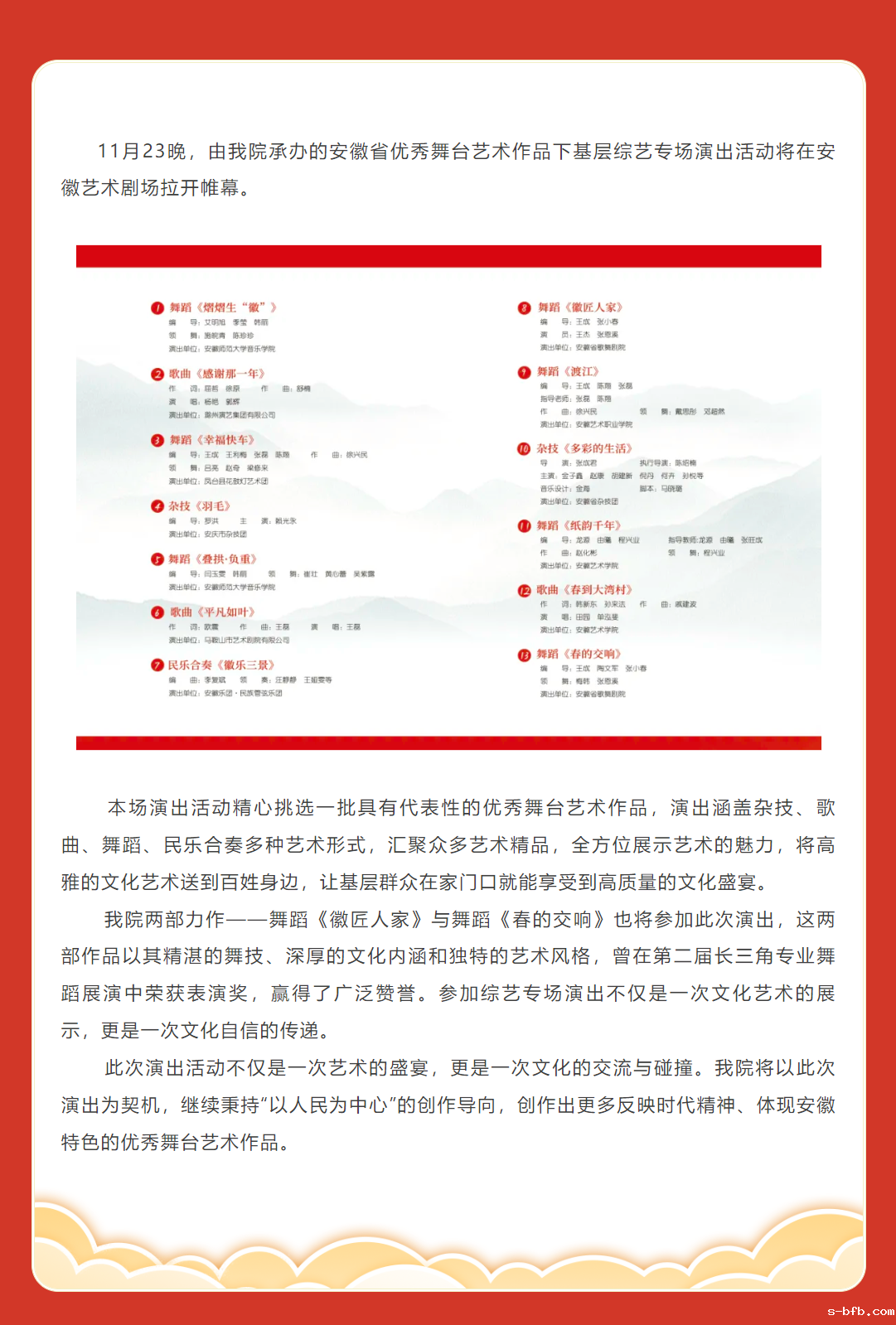 精彩绽放,艺动民心——我院承办安徽省优秀舞台艺术作品下基层综艺专场演出活动