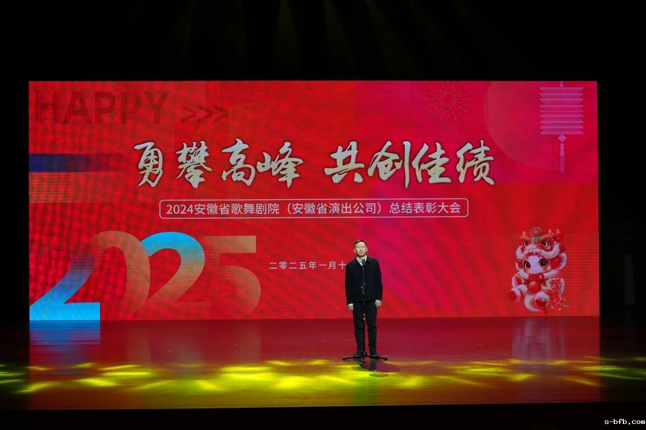 张健同志在致辞中指出,过去一年,省歌舞剧院各项工作取得积极成效,希望新的一年里再接再厉,在不断坚守中收获丰盈的效益,在不断开拓中展示更多的智慧,在不断奋进中奉献无悔的青春,祝省歌舞剧院一年更比一年好。 集团党委书记、董事长 张健致辞 会议播放了我院年度工作总结视频,2024年度剧院全体干部职工团结一心,奋力拼搏,在市场拓展、艺术创作、人才培养等方面取得了突破性进展,营收和利润均创历史新高,营收同比增长68.72%,利润同比增长8.52%,员工收入同比增长10.2%,为剧院的长远发展奠定了坚实基础。 会议对年度考核优秀的11位先进个人以及在全国各类赛事、展演中取得了优异成绩的9位优秀演职员予以表彰。同时,表彰环节中还穿插了各部门人员自编自导的精彩演出,一个个诙谐劲爆的节目燃爆全场,将现场气氛一次次推向高潮。 2025年,省歌全体人员将坚持以习近平新时代中国特色社会主义思想为指导,贯彻落实习近平总书记考察安徽重要讲话精神,紧扣时代脉搏,推动守正创新,着力构建一体两翼三保障管理体系,积极打造精品剧节目,大力开拓文旅演出、剧场演出市场,强化党建引领、人才保障、制度保障,携手并肩、砥砺前行,以更为饱满的热情、更为精湛的技艺,创造更加辉煌的业绩,书写更加绚丽的篇章。 颁奖环节 精彩演出