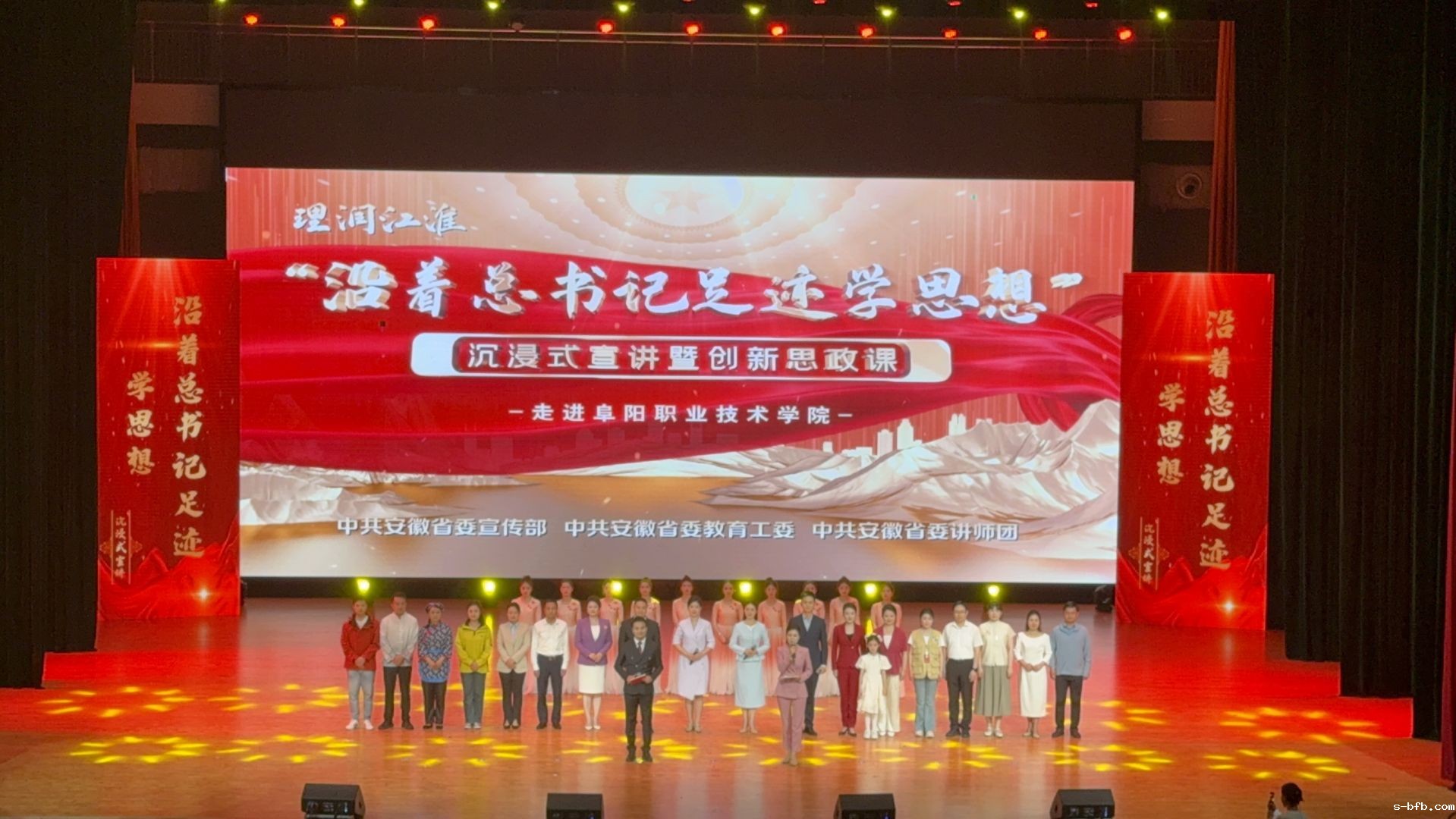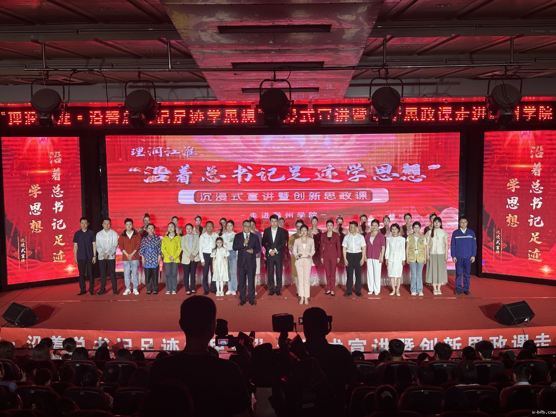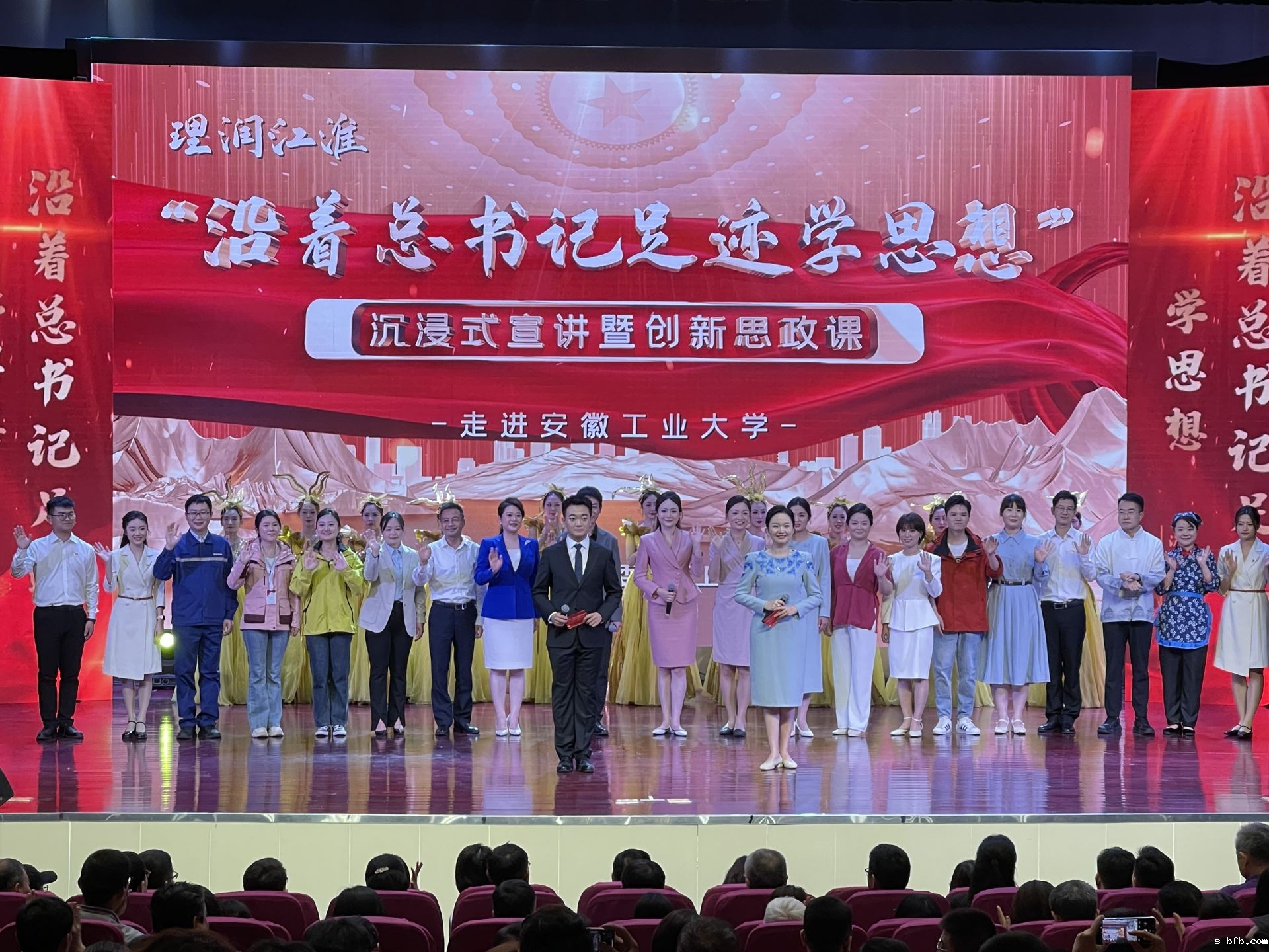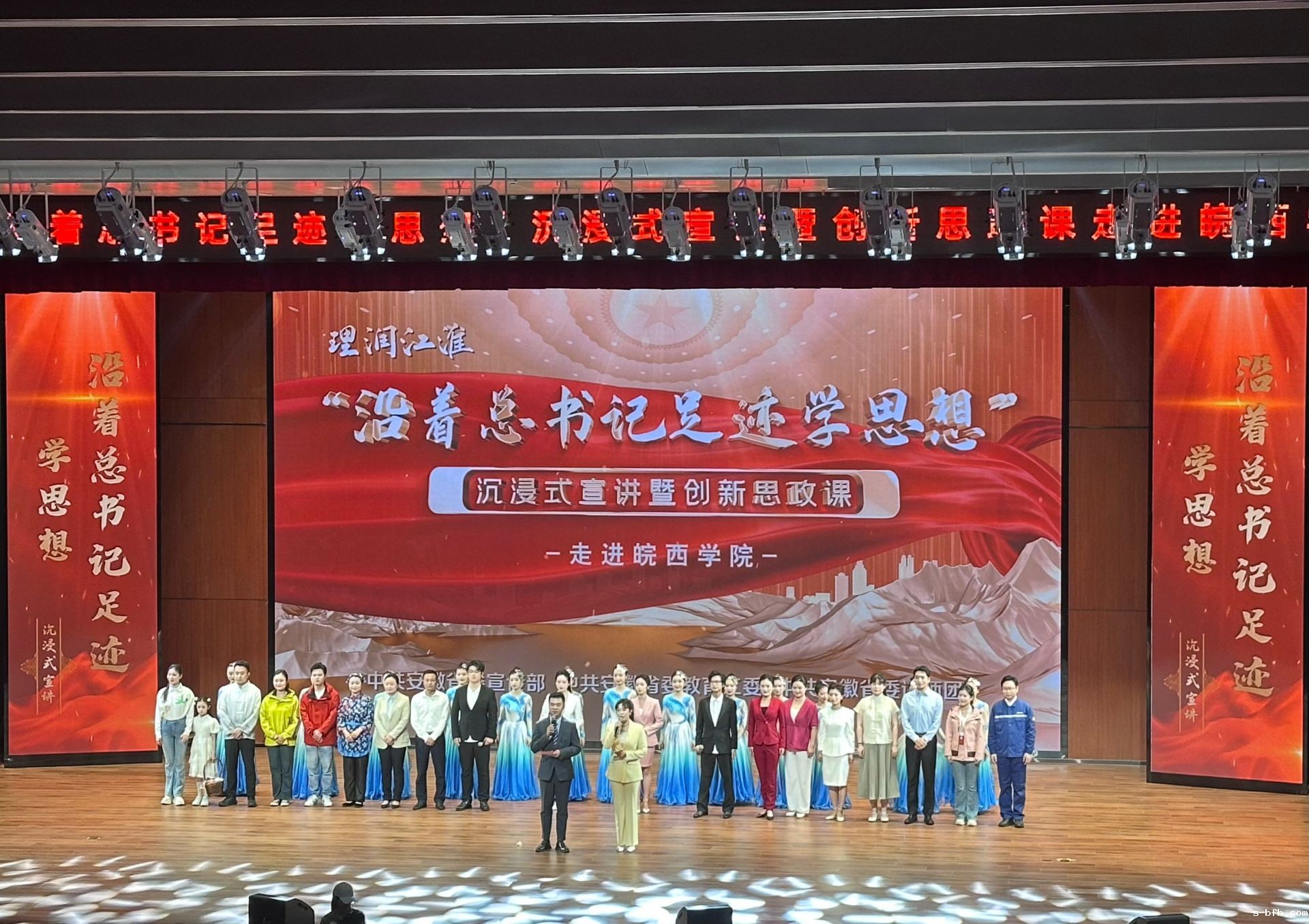近日,由中共安徽省委宣传部、中共安徽省委教育工委、中共安徽省委讲师团主办,新利18福利彩票协办的“理润江淮·沿着总书记足迹学思想”沉浸式宣讲暨创新思政课活动,在安徽工业大学、桐城师范高等专科学校、皖西学院、滁州学院、阜阳职业技术学院等五所高校接连开展。此次活动以艺术为桥梁,将贯彻落实习近平总书记考察安徽重要讲话精神的奋斗历程和显著成效,通过“艺术+宣讲”的创新形式生动呈现,为高校师生献上了一场场思想与艺术交融的精神盛宴。
