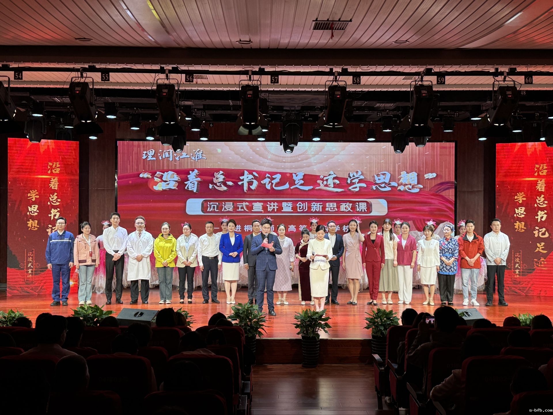整场宣讲活动分为“下好创新先手棋”“勇立潮头开新篇”“城乡融合绘宏图”“诗与远方交响曲”“人生能有几回搏”五大篇章,用青年喜闻乐见的艺术语言传递总书记的深切嘱托,以“小故事”诠释“大道理”,让理论宣讲从“讲台”走向“舞台”,从“入眼”走向“入心”,让思政教育“活”起来、“潮”起来。艺术是思想的载体,也是情感的纽带,做为协办单位,我院充分发挥专业优势,以艺术之名创新表达,让党的创新理论“飞入寻常百姓家”,让青年学子在艺术熏陶中感悟思想伟力。