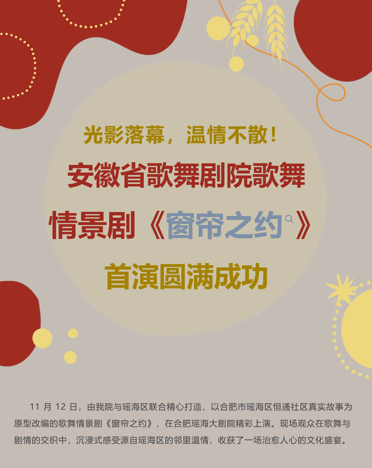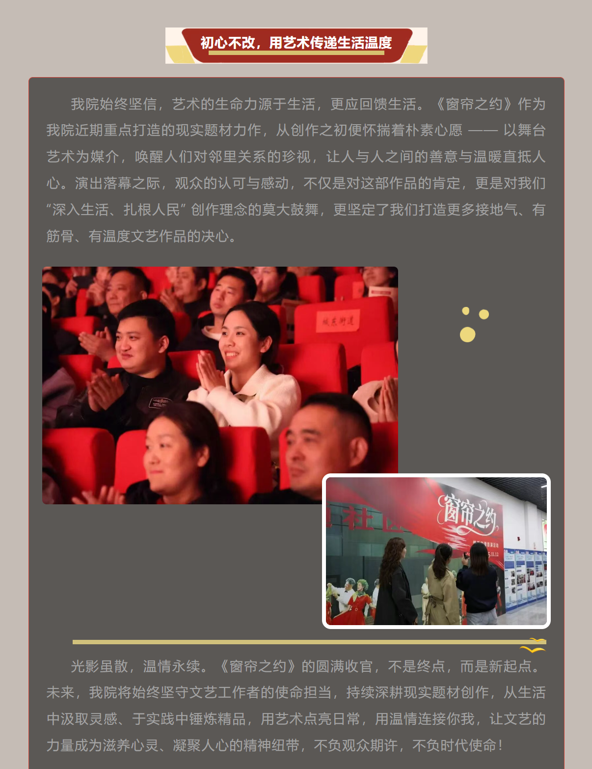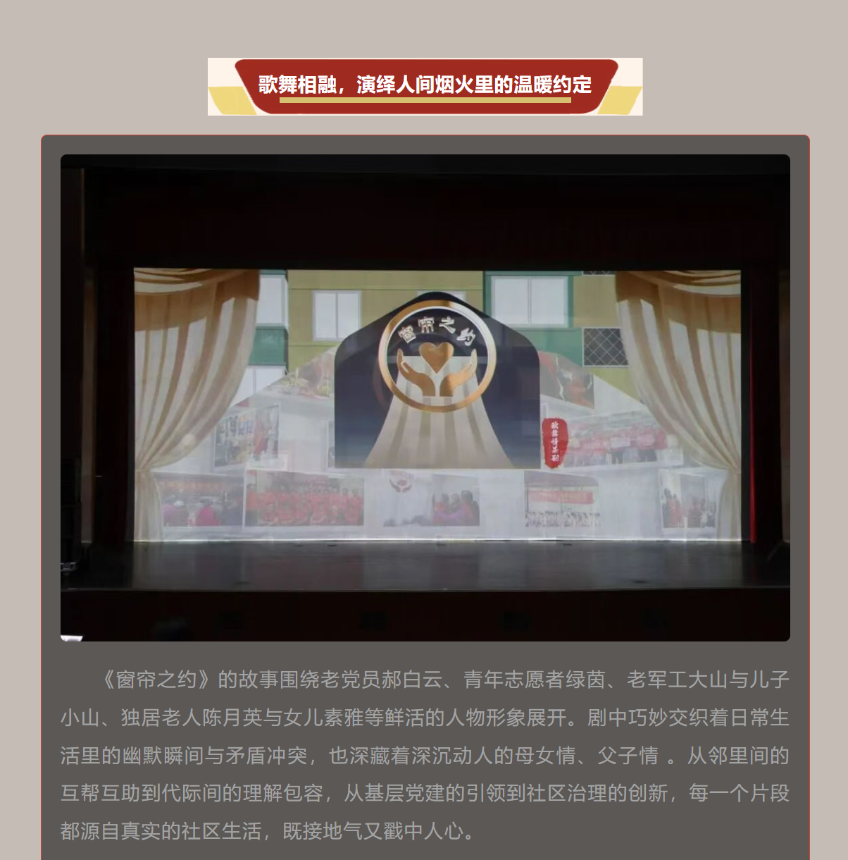 光影落幕,温情不散! 歌舞情景剧《窗帘之约》首演圆满成功