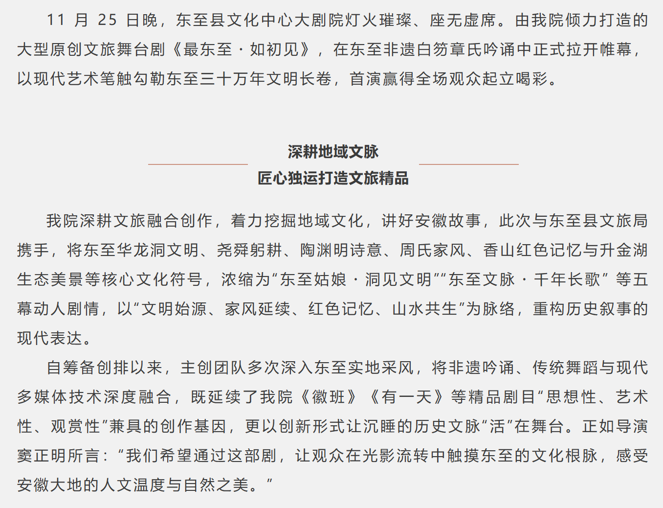 《最东至・如初见》首演圆满落幕 ,千年文脉在舞台 “活” 起来!